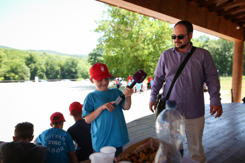 Négy gyerek nyilatkozik a tévéseknek a tábori élményekről: teniszezésről, pingpongozásról, csocsózásról, számháborúról, kirándulásokról, kalandparkról. Egy ötödiket, aki körülöttük sündörög, inkább a mikrofon érdekli: elkéri a riportertől, belekiabál, eljátssza, hogy tévés, kedvesen handabandázik.
