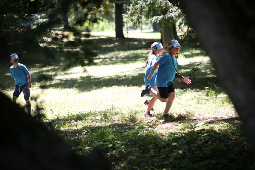 A program zárásaként a Nádasdyak botanikus kertjén át ebédelni indulunk. A piros sapkás, kék pólós gyereksereg úgy vonul, mint a hupikék törpikék. Egy kislány lemarad, elbújik, majd így kiált: „Közönséges mogyorófa árnyékában állok” – aztán büszkén kitekint a lombok alól.