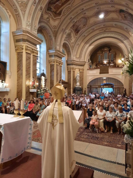 A magyar híveket a szombati napon, július 15-én a templomkertben magyar ajkú lelkiatyák várták, hogy a több száz éves hársfák árnyékában elvégezhessék a szentgyónást. Megható, ahogy sorokban várakozva éltek is a hívek ezzel a lehetőséggel. Aztán virágokkal díszített kereszttel az élen, énekszóval megérkeztek a felvidéki Mária-út zarándokai is, akik idén már nyolcadik alkalommal tették meg gyalog az útvonal egy részét. Majd következett a szabadtéri keresztút imádsága és az ünnepi litánia a kegytemplomban.