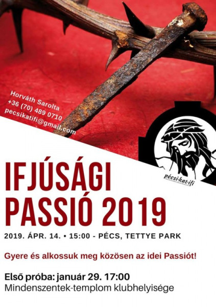 Április 14-én, virágvasárnap 15 órától mutatják be a Jézus szenvedéstörténetét felelevenítő misztériumjátékot a pécsi Tettyén. Az első próbát január 29-én, kedden 17 órára hirdették meg a szervezők. A szereplők január végétől keddenként, 17 és 19 óra között találkoznak majd a Mindenszentek-templom klubhelyiségében (Pécs, Tettye utca 14.).
