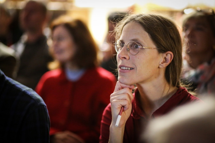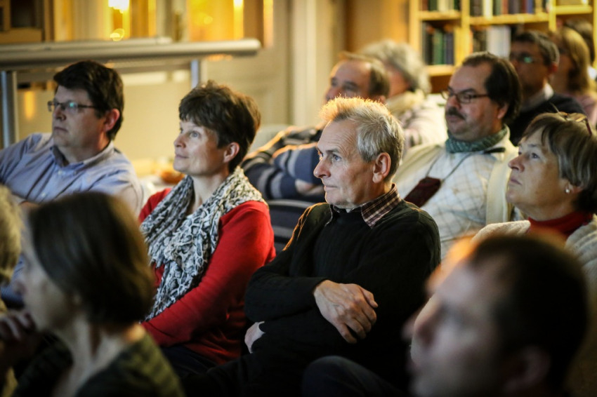 Még egy pillantás a Ben Ezra zsinagóga 1840-ben felfedezett genizájának (ősi szövegtöredékek tárháza) bejáratára, és a következő fotók már ismét Jeruzsálembe vezették az előadás résztvevőit, a Sion-hegyen található cenákulum (az utolsó vacsora terme) emlékhelyére, ahol modern kertet alakítottak ki. A kertből nyíló alsó kápolna nonfiguratív, színes liturgikus tere is a kulturális misszió „bizonyítéka”.