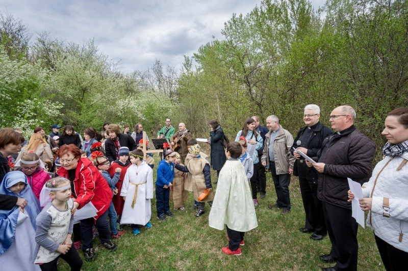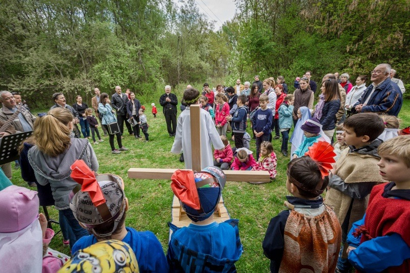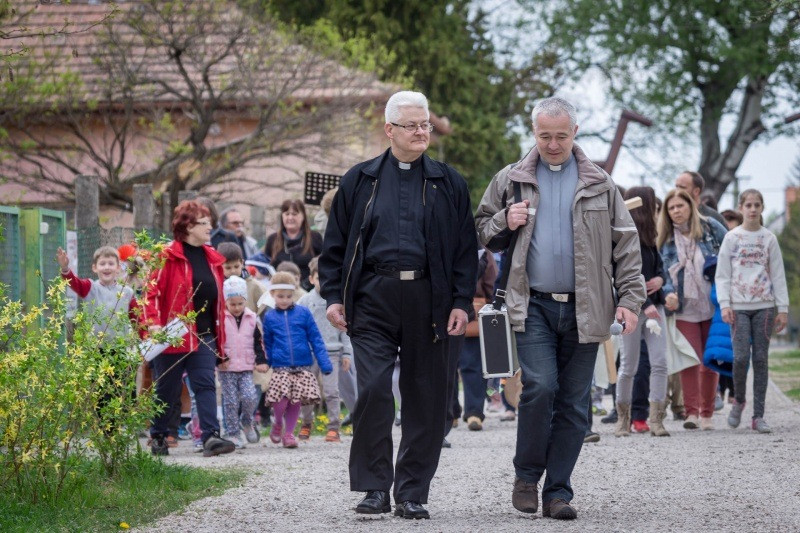 A keresztút állomásain az elmélkedéseket a szülők olvasták fel. A családokat ebben az esztendőben is elkísérte Spányi Antal püspök, Ugrits Tamás irodaigazgató és Tóth Tamás plébános.