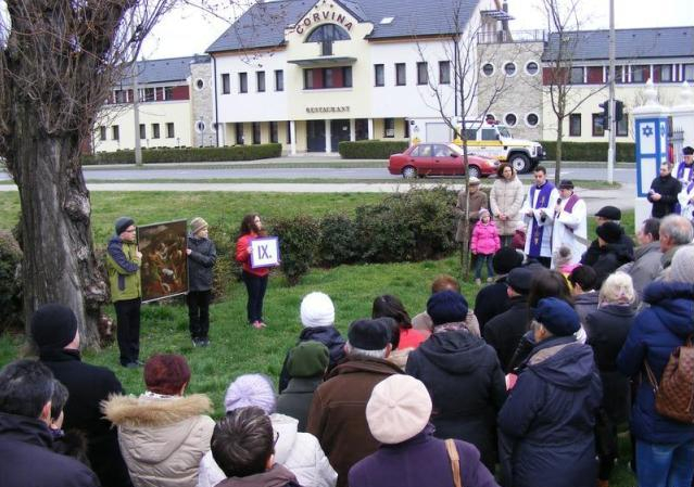A mintegy háromszáz résztvevő a magyaróvári Szent Gotthárd-templomból indult a városon keresztül, és a két és fél kilométeres út végén a mosoni Nepomuki Szent János-templomban szentmisével fejezte be a keresztútjárást. A szentmise szónoka Szentmártoni Mihály jezsuita atya, a római Pápai Gergely Egyetem professzora volt.