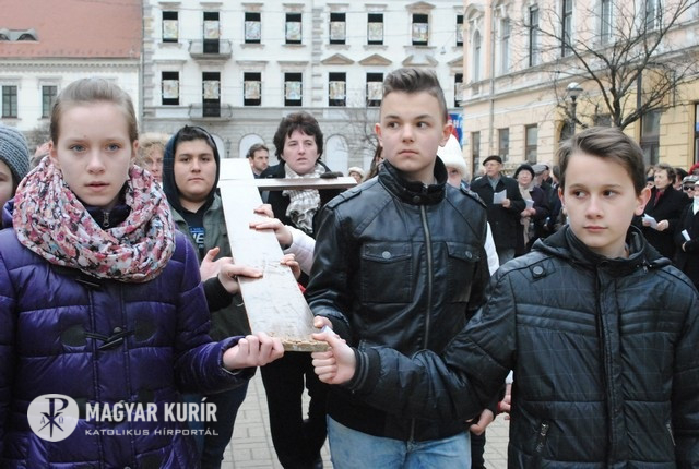 A keresztút végén Palánki Ferenc püspök arról beszélt, hogy Jézus Krisztus életútjával, kereszthalálával és feltámadásával újjáteremti az életet. Nekünk is lehetőségünk van odaadni életünket egymásért, szeretetből.