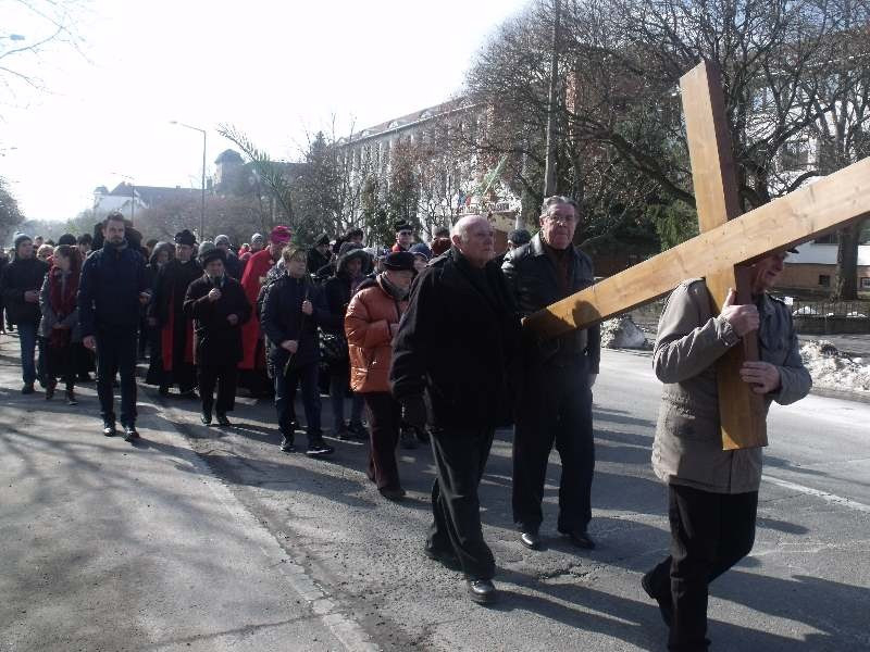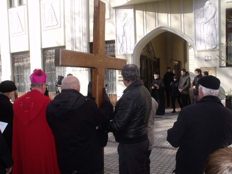 Idén is várta a keresztutat járók menetét temploma előtt Gál Sándor református esperes – ő végezte az ötödik állomást. Továbbindulva zúgni kezdtek a görögkatolikus Szent Miklós-székesegyház harangjai. A szeminárium kispapjai elöljárójukkal várták a keresztet a püspökség kapujában.