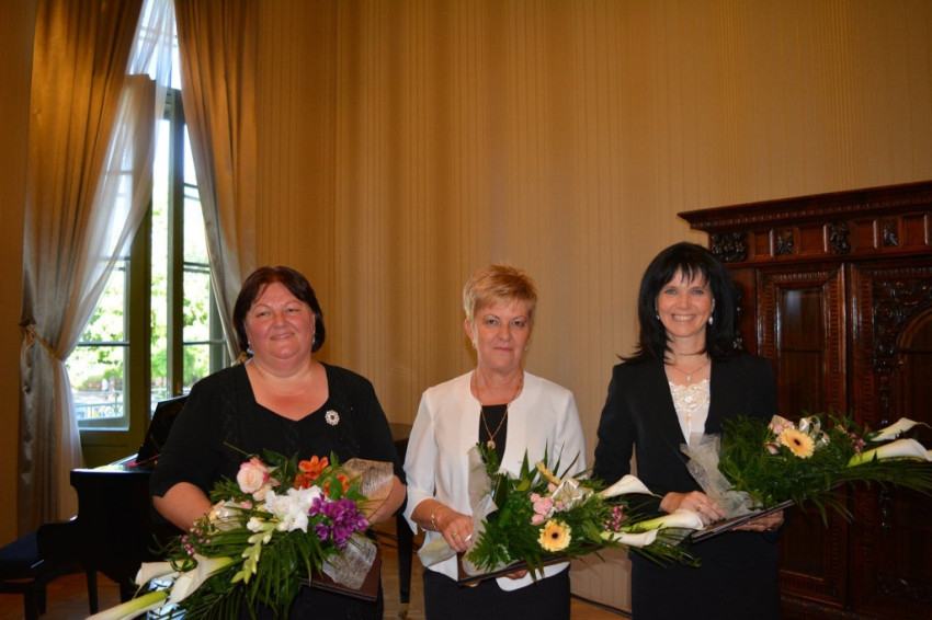 Vig Ottóné (középen) 1999-től lett a Széchenyi Iskola pedagógusa, de a pályán már 38 évet töltött el. Az intézményben folyó nemzetiségi német nyelv oktatásába 2001-től kapcsolódott be, majd a kéttannyelvű német nemzetiségi oktatás egyik meghatározó alakjává vált. A mindennapi oktató munka mellett folyamatosan végzi a tehetséges tanulók nyelvi fejlesztését, és pályája kezdete óta ellát osztályfőnöki feladatokat is.