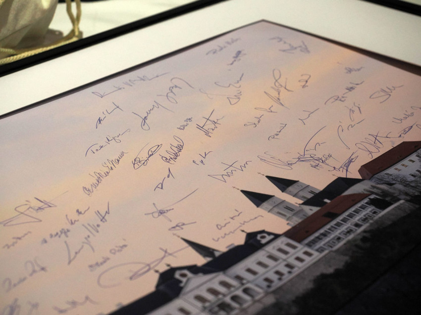 Az ötletgazdának, Udvardy György érseknek külön köszönetet mondott, majd Vörös Tamással egy, a megújított várnegyedről készült, aláírt képet adtak át neki.