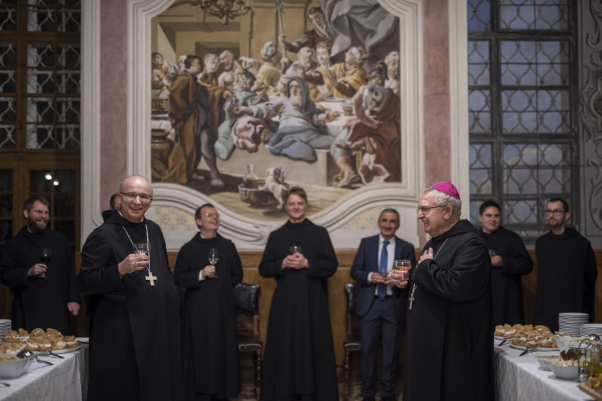 A pannonhalmi bazilikában bemutatott hálaadó szentmisén Matusz Hugó perjel mondott szentbeszédet. „Mindnyájan Isten szeretetéből érkezünk a világba. És Isten szeretetéből épült nekünk ez a világ otthonunkká. És Isten azóta itt sétál az alkony hűvösében, a nappali szellőben, keresi és szólítgatja az embert, hogy találkozzon vele, hogy meggyógyítsa, magához kapcsolja” – kezdte szentbeszédét a pannonhalmi perjel, majd a felolvasott szentírási részekre utalva rámutatott: „A bűnbeesés története egy törékeny emberpár képét mutatja fel, akiket a lehetőségek csábítása könnyen elterel a döntés következményinek latolgatásától. A felelősség kusza, de a hatás letaglózó. A bűn sebet ejt, elvész a biztonság és az otthonosság. Az ember Istennel való kapcsolatában zavar támad, szégyen és idegenség tolakszik be. A kert kapuja bezárul, az ember világának legfontosabb része – ahol az ember Istennel sétálhatott – elérhetetlenné válik.