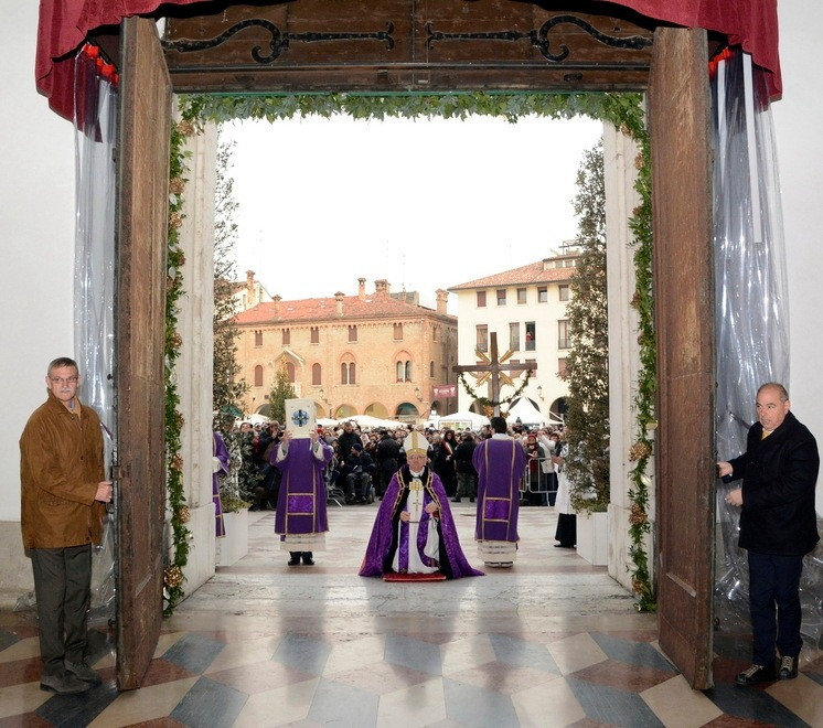 Olaszországban sok szent kapu nyílt: Bergamo egyházmegyében például harmincöt; a hatalmas milánói ambroziánus egyházmegyében mindössze hat szent kapu várta a híveket, de Angelo Scola bíboros, érsek további ötvenkilenc úgynevezett penitencia templomot jelölt ki a rendszeres gyóntatásra a jubileumi szentév során; Novarában hat kaput nyitottak; Genovában Angelo Bagnasco bíboros mindössze két templomot jelölt ki, melyekben szent kaput nyitottak.