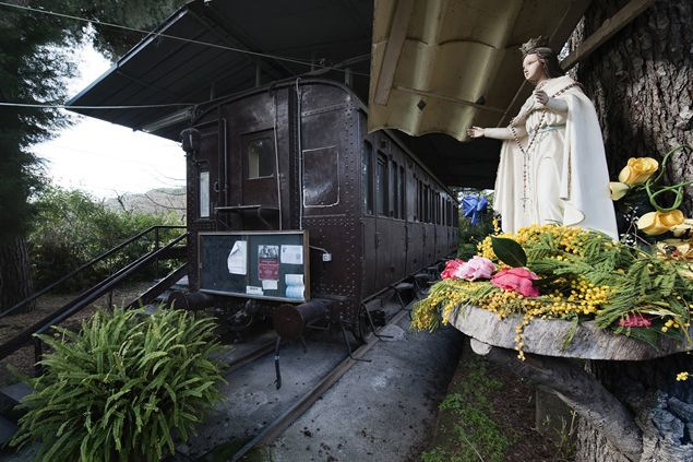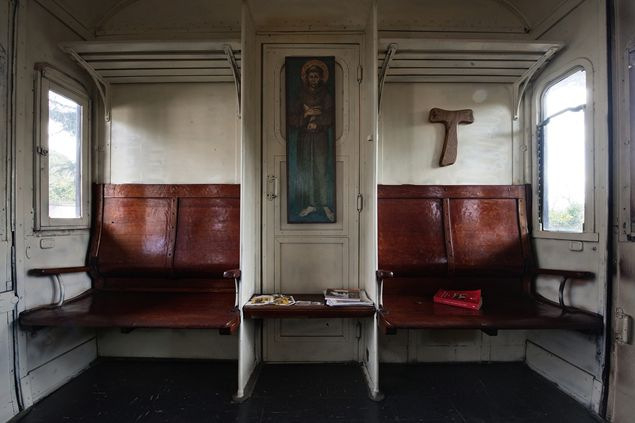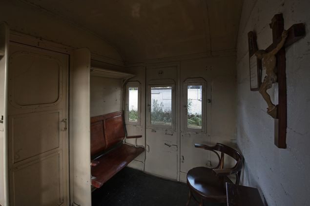 A vasúti kocsik kápolnaként, szerzetesi cellaként, gyóntatófülkeként és dolgozószobaként is szolgálnak, illetve egy kis veteményeskert is tartozik a területhez.