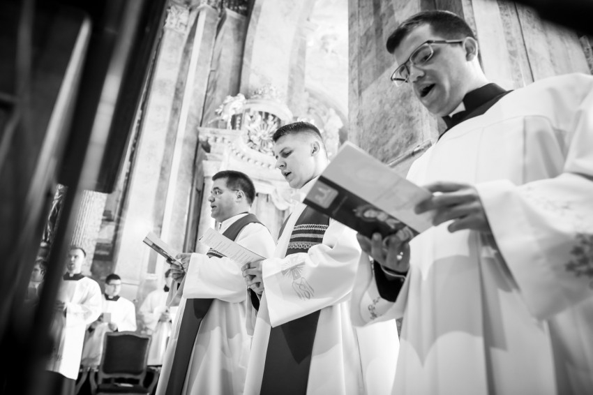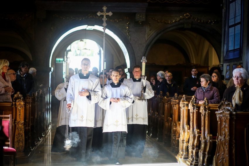 A kis közösség sokakért imádkozott, azokért is szólt a fohász, akik nem jöttek el. Az egész liturgiát átszőtte az ének, a búcsú hagyományos dallamai, a kispapok recitálva olvasták fel az olvasmányt és a szentleckét.