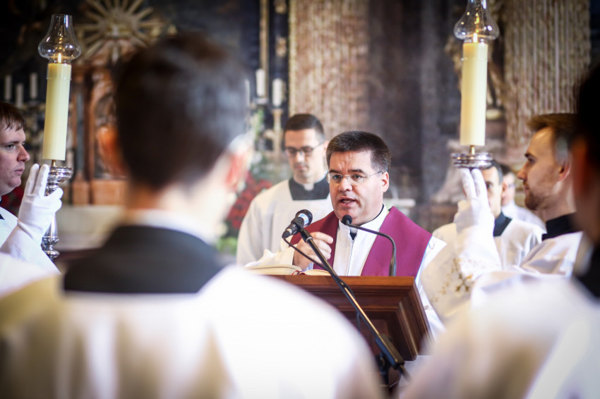 Veres András arról elmélkedett, mi a jelentősége annak, hogy templomba, szentmisére járunk, hogy ez hitünk megélésének alapvető formája. Az evangéliumban Jézus ezzel szemben arról beszél, Istent lélekben és igazságban kell imádnunk.