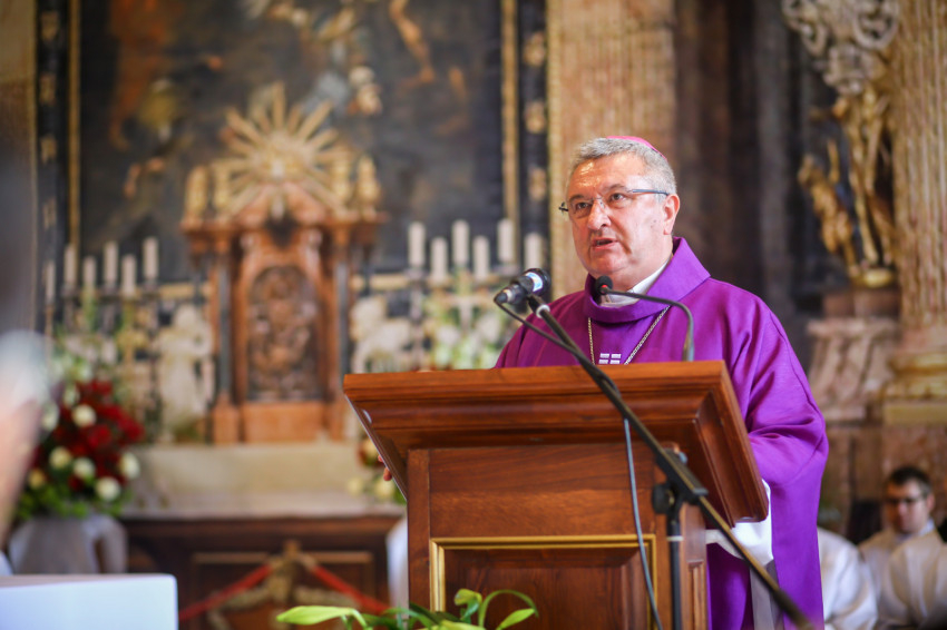 Arra buzdított a főpásztor, hogy nehéz helyzetben, amikor úgy érezzük, imádkozni sem tudunk, forduljunk Máriához, akinek súlyos megpróbáltatások jutottak, mégis mintát tudott adni, hogyan kell lélekben és igazságban imádni Istent. Szent-Gály Katától idézett sorokkal biztatott Veres András a követendő magatartásra: