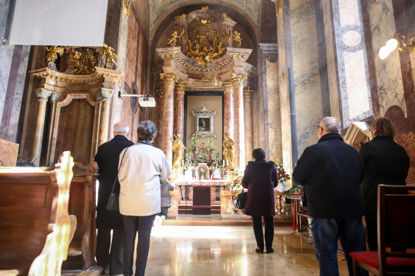 A kegykép előtt a hívek folytatták az imát, így fejeződött be a hívek búcsúja a koronavírus idején.