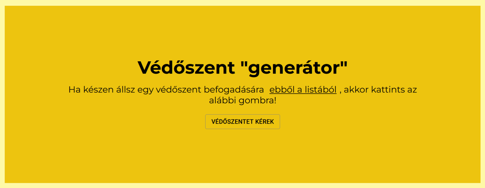 2. A következő felület pedig már ki is adja a szentünket! Az új felületen kimaradt az imára buzdító közbülső lépés, bíznak benne, hogy ezt minden felszólítás nélkül amúgy is megtesszük „szentkérés” előtt.