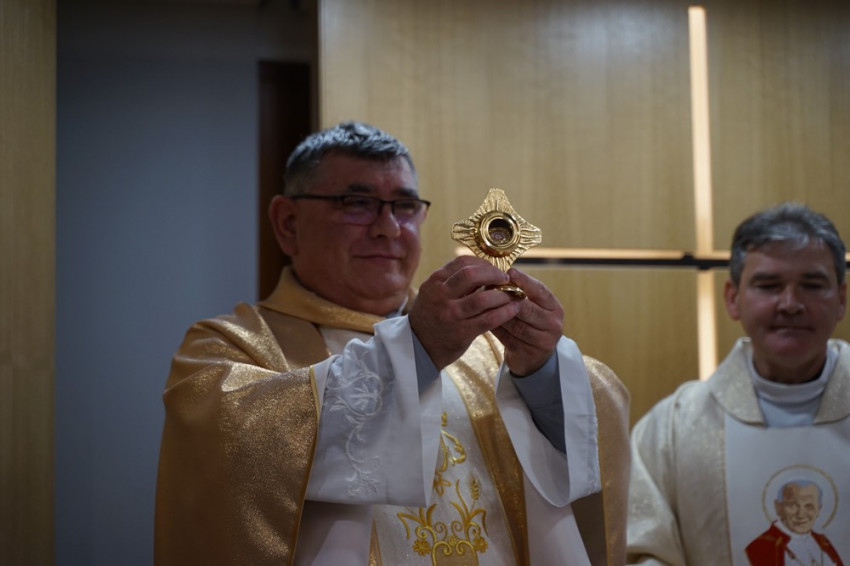 Az ereklyét búcsús szentmise keretében adta át Paweł atya, akinek egyben az ezüstmiséje is volt a liturgia. A szertartás kezdetén felolvasták Stanisław Dziwisz bíboros, varsói érsek üzenetét és hitelesítő leiratát. A főpásztor, aki a szent pápa titkáraként is szolgált, levelében áldását küldte a pécsi híveknek.