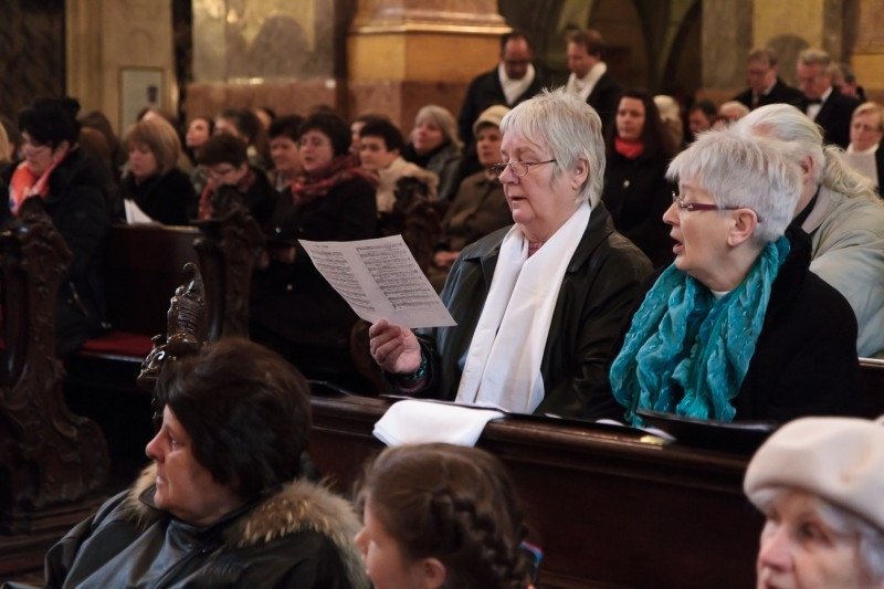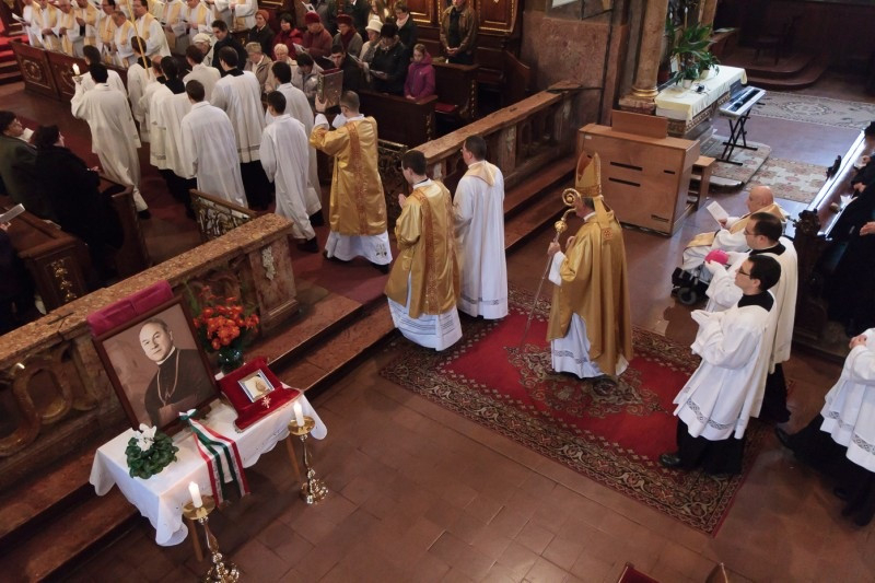 A szentmisén az aznapi egyházmegyei kórustalálkozó résztvevőiből álló összkar végezte a zenei szolgálatot. A liturgia végén a főpásztor, a koncelebráló papság, az asszisztencia és a jelenlévők együtt imádkoztak a vértanú püspök közbenjárásáért és szentté avatásáért, majd a bazilika Palestrina kórusa előadta Charpentier Te Deum című művét. Ezt követte a részt vevő kórusok bemutatkozása.