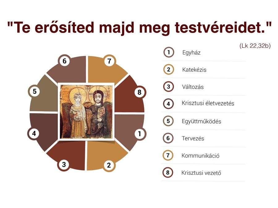 A képzés során olyan témák kerültek előtérbe, mint a katekézis, változás, krisztusi életvezetés, de a tervezés, kommunikáció, együttműködés területén is fejleszthették készségeiket a résztvevő katekéták. A márciusi záró találkozó a vezető személyét állította középpontba Barnabás, a hálózatépítő „koordinátor” példáján keresztül. A vezetői eszköztár részeként kreatív problémamegoldó módszereket is megismerhettek a jelenlévő hitoktatók.