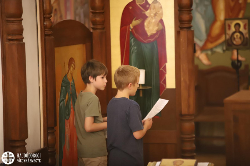 Az egyébként csendes hétköznapok pillanatok alatt felbolydultak a debreceni metropolitai hivatalban, amikor a liturgikusének-tábor lakói birtokukba vették az épületet. Ki valamilyen hangszeren gyakorolt, ki énekelt, de bárhogyan is foglalták le magukat a gyerekek, egyvalami biztosan érzékelhető volt: az a fajta felszabadultság, ami kizárólag nyáron éri utol a kicsiket.