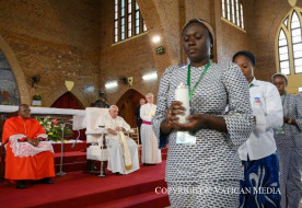 A Kongói Demokratikus Köztársaságban február 1-jén délelőtt a város repülőterén mutatott be szentmisét egymillió ember részvételével, délután pedig a nunciatúrán két találkozóra került sor: a Kongó keleti részén dúló erőszak túlélőivel találkozott, majd néhány karitatív szervezet képviselőit fogadta. Február 2-án három találkozón vett részt: két nyilvános eseményen, a fiatalokkal és a katekétákkal, majd egy imatalálkozón papokkal, diakónusokkal, szerzetesekkel és szerzetesnőkkel, szeminaristákkal. Ezt követően zárt körű találkozót tartott a Jézus Társasága tagjaival. Mielőtt elhagyta volna a Kongói Demokratikus Köztársaságot, az ország püspöki konferenciája székhelyén találkozott a főpásztorokkal.