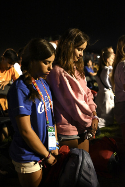 A szentmisét követően a fiatalok útra keltek az éjszakai imavirrasztás helyére a Tejo parkba, amely a találkozó idejére a kegyelem parkjává vált (Campo da Graça). Ferenc pápa fél kilenc után érkezett meg a helyszínre, hogy közös szentségimádáson vegyen részt a zarándokokkal.