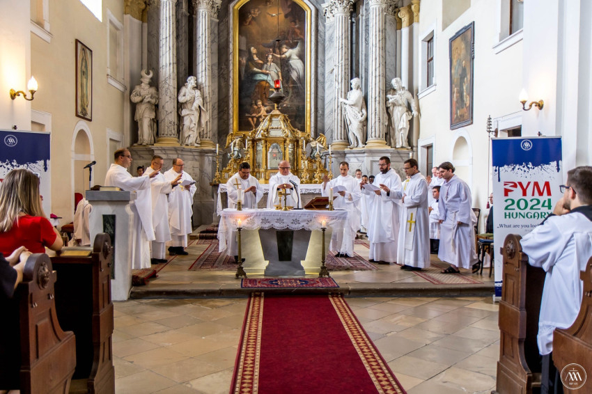 A program nyitó szentmiséjét Michael W. Banach apostoli nuncius mutatta be Zsódi Viktor tartományfőnökkel és a PYM-en részt vevő piarista szerzetesekkel együtt.
