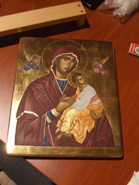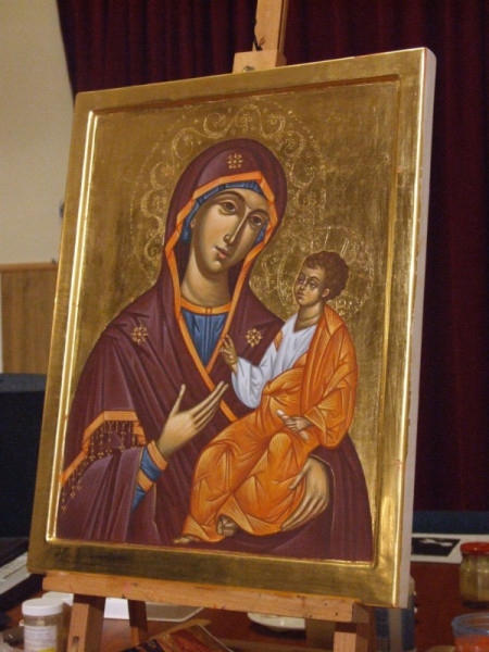 Ebben az évben a megfestésre kiválasztott képmás egy, az athéni Bizánci Múzeumban őrzött 15. századi ikon, az úgynevezett Odigitria (Útmutató) Istenszülő volt. A résztvevők szabályosan elkészített, merevítővel ellátott, alapozott és csiszolt fatáblákkal érkeztek, és a munka felrajzolásával kezdték meg tevékenységüket. A felrajzolás után következett az aranyozás valódi arannyal és a poncolás (az aranyozás felületén ismétlődő díszítő motívumokat alkalmazó eljárás). Ez a művelet különösen fontos, mert Pavel Florenszkij, a zseniális orosz teológus szerint „az ikont fényre festik”. Ez azt jelenti, hogy az ikonon az arany segítségével ábrázolt isteni fény Krisztus színeváltozásának fénye; ez árad ki a világra Krisztus jelenlétével, és ez a fény, a Szentlélek fénye ragyog minden szent ember arcán, mindazokén, akiket ikonon is ábrázolni lehet.
