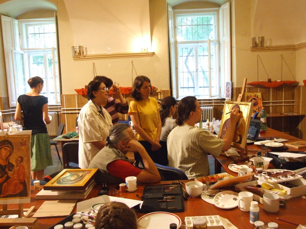 Különleges színfoltot jelentett a műhely utolsó estéjén Imrényi Tibor protojerejnek, a szegedi Szent György Nagyvértanú Ortodox Egyházközség parókusának előadása, aki röviden ismertette a Szent György-templom ikonosztázionjának történetét, az oltárnak és az azon elhelyezett liturgikus eszközöknek, ikonoknak teológiai jelentőségét, majd bemutatta a templom érdekesebb ikonjait és történetüket.