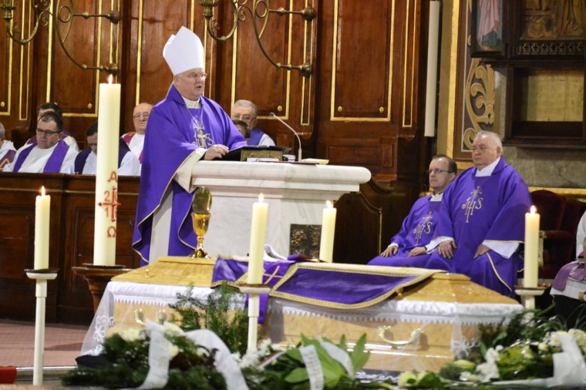 Most pedig itt vagyunk, és imádkozunk, arra kérve a Jóistent, hogy fogadja őt be az igazak országába, jutalmazza meg hűséges szolgálatáért, megköszönve mindazt a jót, kedvességet és ajándékot, mellyel elhalmozott minket rajta keresztül, azt, hogy a szomorúságunk ellenére hittel és reménnyel tekinthetünk a jövőbe, bízva abban, hogy eljön a viszontlátás pillanata az ő országában– fogalmazott a főpásztor. – Bizonyára sokakat elszomorít Vas László gyors távozása, de a bánat dacára a vezérlő és reményt adó csillagra, az Úrra kell tekintenünk, kérve őt, adja meg a hit világosságát nekünk, és az örök nyugodalmat neki.