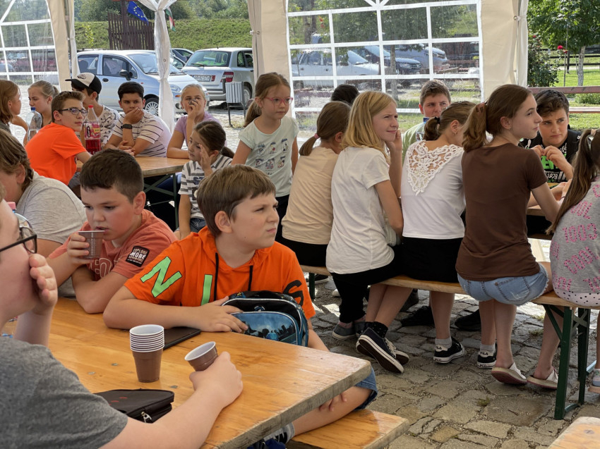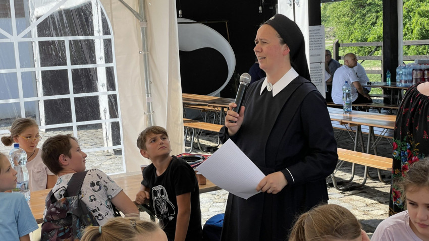 A nap programja a pécskai bivalyfarmon folytatódott, ahol Dumitru Dániel, Temesvár II. gyárvárosi plébános üdvözölte a jelenlévőket, majd Bukovics Erika-Mária schönstatti nővér játékkal nyitotta meg a tábort.