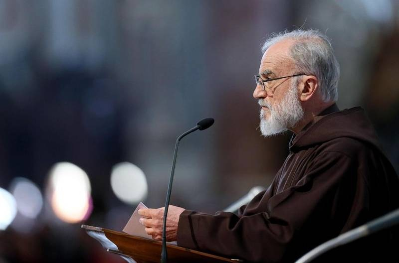 P. Cantalamessa hosszú prédikációját a feltámadás misztériumára utalva zárta: húsvét vigíliájának öröménekét idézte: „Ó szerencsés bűn, amely ilyen Megváltót érdemelt!” Jézus magára vette bűneinket, és ha megbántuk azokat, „szerencsés bűnök”, mert utána már Isten megbocsátó irgalmára és gyengédségére emlékeztetnek, amelyeknek alkalmául szolgáltak.