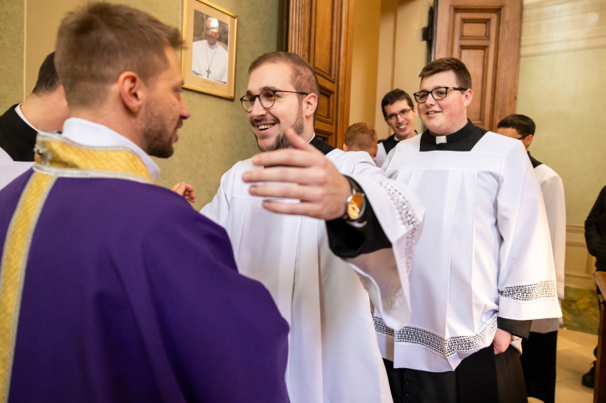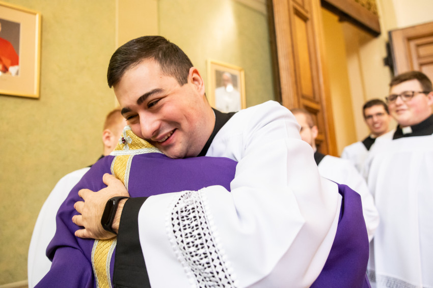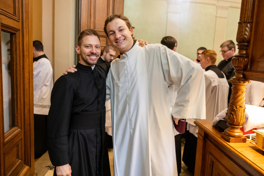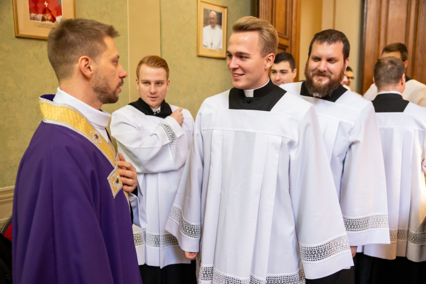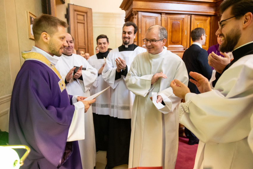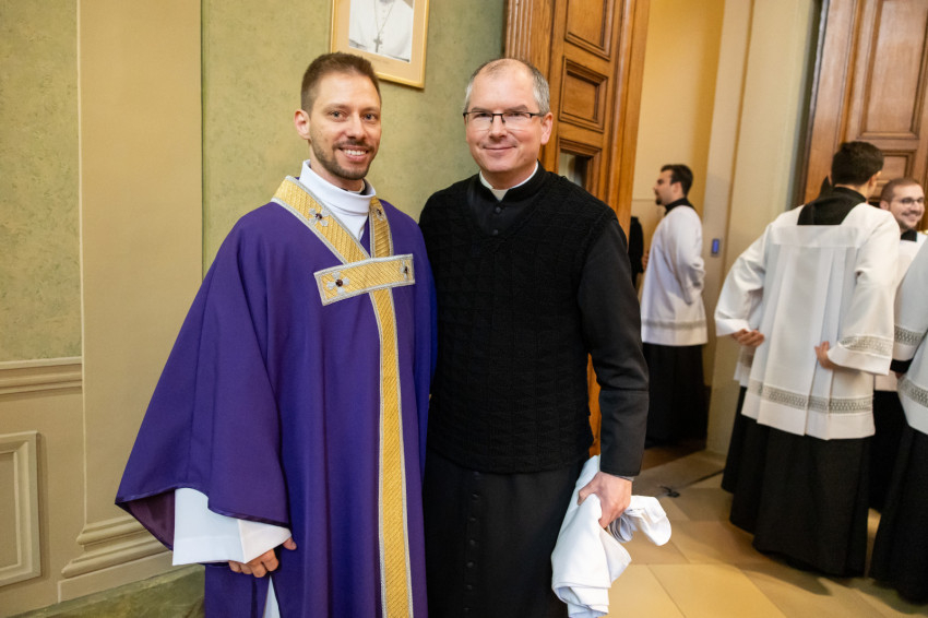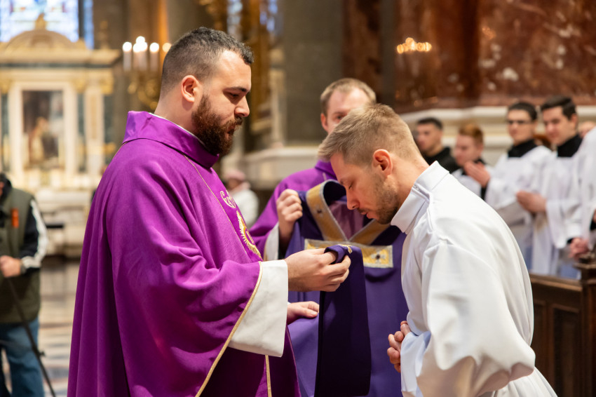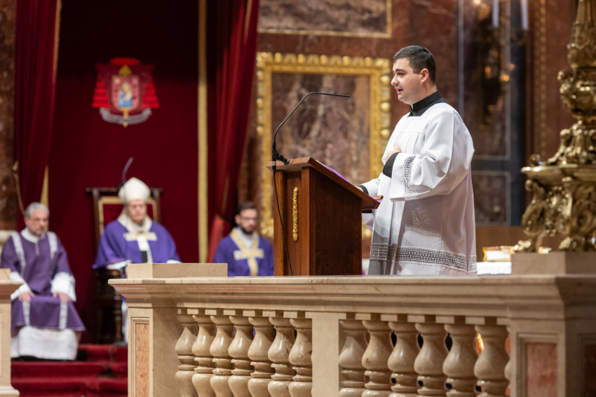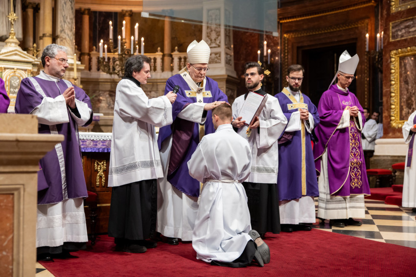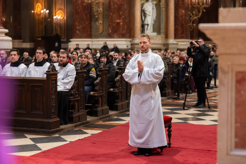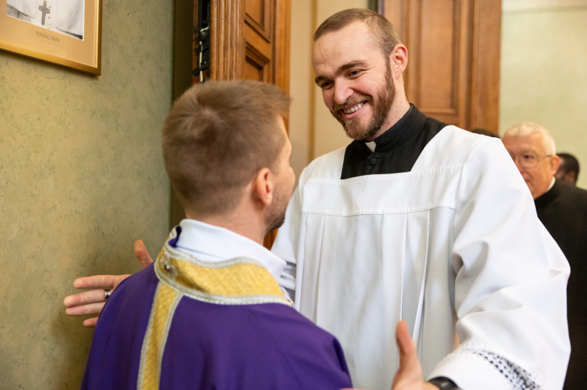 Diakónusszentelésre gyűltünk ma egybe. A diakónusok a szentelésben még nem az áldozat bemutatására, Krisztus áldozatának jelenvalóvá tételére kapják a kézfeltételt, hanem a szolgálatra. De ez a szolgálat Isten igéjének továbbadása, az oltár körüli segédkezés és a hivatalos egyházi szeretetszolgálat területe. Vagyis nem csupán személyes keresztény hitéről tesz tanúságot a felszentelt diakónus, hanem hivatalosan képviseli az Anyaszentegyházat. Ez pedig különleges és nagy felelősség. Érthetően, tisztelettel adni tovább az Evangéliumot, az Egyház hagyományának és tanítóhivatalának megfelelően, felelősen magyarázni azt nagy hivatás, amely arra kötetez minket, hogy teológiailag is, imádságban is felkészült emberek legyünk. Amikor pedig prédikálunk vagy oktatjuk a hitünket, konkrétan is, bölcsen és alaposan készüljünk fel ne csak arra, hogy jót és igazat mondjunk, hanem arra is, hogy ez az igazság eltaláljon a hallgatóság szívéhez. A régi mondás úgy tartja: Quis ascendit sine labore, descendit sine honore – Aki munka nélkül megy fel a szószékre, az dicstelenül jön le onnan. De minden diakónusi ténykedésben érezned kell, kedves szentelendő testvérem, hogy