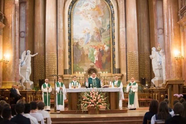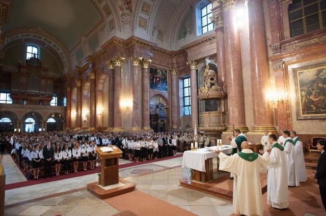 A székesegyházban összegyűlt közel hatszáz diákot, a tantestületet és a Veni Sanctén részt vevő hozzátartozókat Fazakas Zoltán Márton köszöntötte, akit a Csornai Premontrei Apátság örökfogadalmas tagjai augusztus 19-én Thomas Handgrätinger generális apát és Ullmann Péter Ágoston, a magyar cirkária vikáriusa jelenlétében tíz évre apáttá választottak.