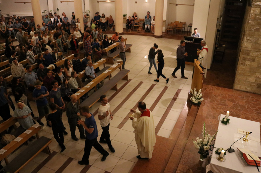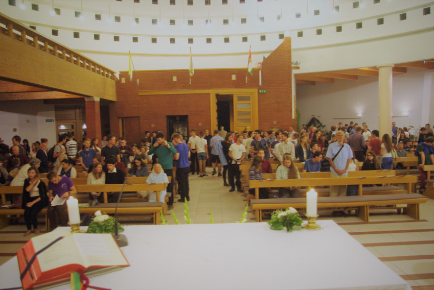 A liturgia végén a résztvevők megkapták az új Egyetemes újságot, valamint a lelkészség egész évi programjáról készült színes ismertetőt. A mise után a templom körül még sokáig csoportokban beszélgettek a fiatalok.