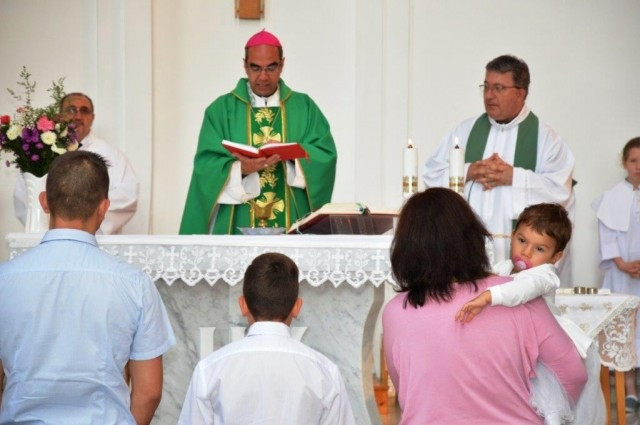 A szentbeszéd után két testvér, Ádám és Fanni keresztelője következett. A jelenlévők Szent Gábriel arkangyal és Római Szent Franciska közbenjárását kérték, akiket a keresztségben védőszentül választottak a gyermekeknek.