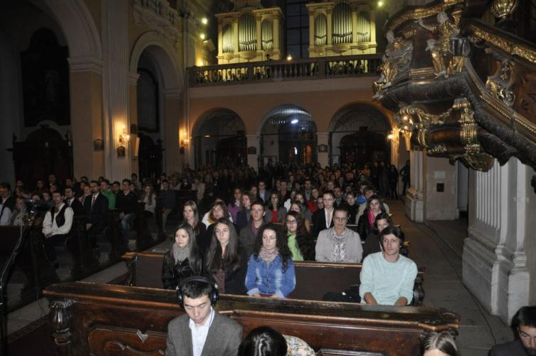 A piarista templomban bemutatott szentmisét Kovács Sándor főesperes együtt celebrálta Takó István (Tiszti) egyetemi lelkésszel – aki immár hetedik éve áll a kolozsvári katolikus egyetemista közösség élén –, valamint a Babeş–Bolyai Tudományegyetem Római Katolikus Teológiai Karának tanáraival: Marton Józseffel, Holló Lászlóval és Vik Jánossal.