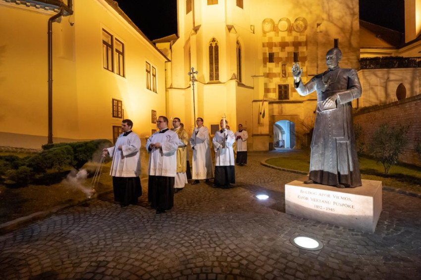A szentmise bevezetőjében úgy fogalmazott a Veres András megyéspüspök, hogy nem csak emlékezni akarunk, hiszen azt már megtettük otthon. Szeretnénk találkozni az Egyház közös imádságában, a szentmisében a közénk született Isten Fiával. Ezzel a vággyal a szívünkben legyünk igazi lelki közösséggé, mert aki szívét kitárja, Jézus lakást vesz benne.