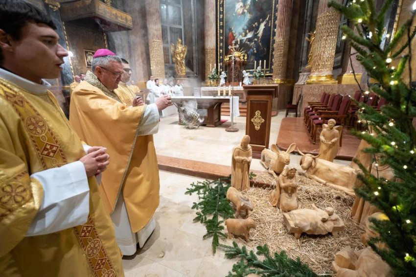 Azt kívánom minden Kedves Testvéremnek, akik itt vagyunk és imádkozunk a Betlehemi Gyermek előtt, legyen részünk annak az üres kezű pásztornak az élményében. Fogadhassuk lelkünkbe az Isten Fiát. Ő azért jött, hogy meggyőzzön minket a Menyei Atya szeretetéről, akinek egytől egyig fontosak vagyunk – zárta szentbeszédét a főpásztor.