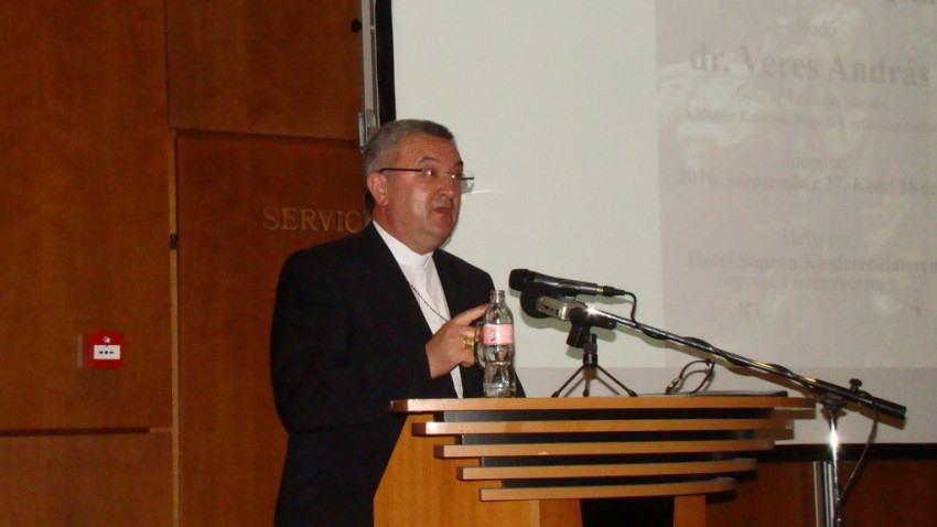 Gyökeres, gyors társadalmi átalakulásnak vagyunk részesei – folytatta előadását Veres András –, de az egyház küldetése nem változott: minden ember üdvösségének a szolgálata. Hitünk szükségszerűen közösségbe hív minket. Ha komolyan vesszük a hitünket, akkor az a helyes magatartás, ha a társadalom formálásában is részt veszünk.