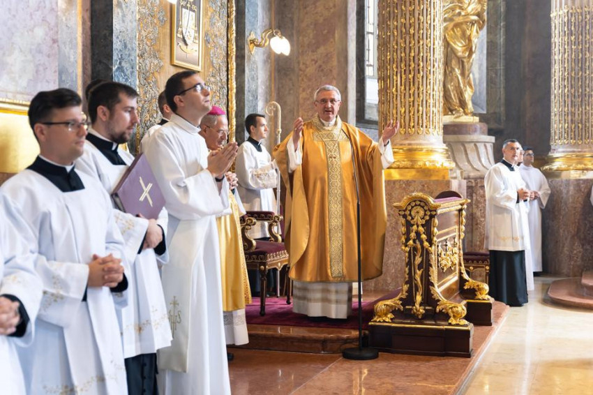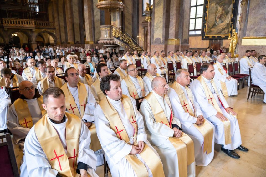 A szentmisén a püspökök mellett koncelebráltak Kiss Róbert, a Nagyszombati Főegyházmegye általános helynöke, a Győri Egyházmegye papsága, karmelita és premontrei szerzetesek.