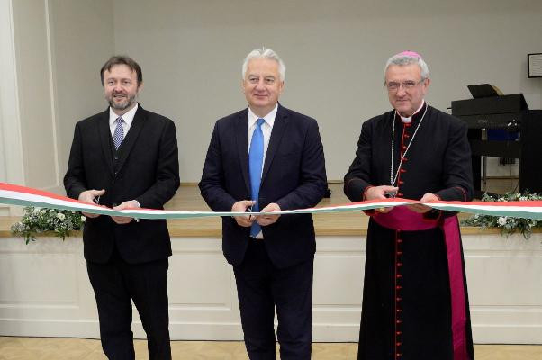 Kovács András, az intézmény igazgatója köszöntőjében elmondta: ilyen mértékű felújítás sosem volt, hiszen az épületegyüttes különböző korszakokban épült. Ez különös ajándék, hiszen jövőre ünneplik az alapítás 275. évfordulóját. „Falai között ezrek és ezrek sajátították el azt a krisztusi alapokon nyugvó tudást és világlátást, amelyre mindenkor bátran építhették egyéni és családi életüket.” 1991 óta folyamatosan végeztek felújításokat, bővítéseket, de ilyen nagy mértékű felújításra nem gondoltak. A tervezés és a kivitelezés során olyan megoldásokat kerestek, amelyekben építészetileg is harmonikus módon találkozik a múlt öröksége a jelen igényeivel, utat biztosítva a jövő lehetőségeinek.