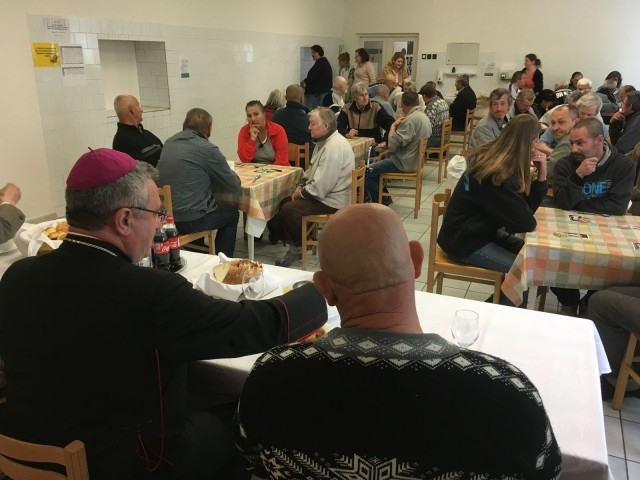 Veres András a húsvét lényegéről beszélt az intézmény által ellátott, nehéz sorsú embereknek. A főpásztor kiemelte, hogy Jézus Krisztus szenvedése előtt apostolaival együtt fogyasztotta el a pászkavacsorát, majd a jelenlévőket a húsvétot bevezető ebédre hívta, amelyet helyben szolgáltak fel. A Magyar Katolikus Püspöki Konferencia elnöke arra bátorította vendégeit, hogy vegyenek részt a templomi szertartásokon.