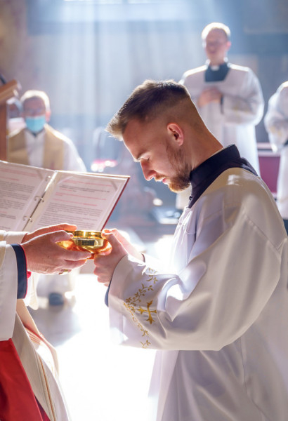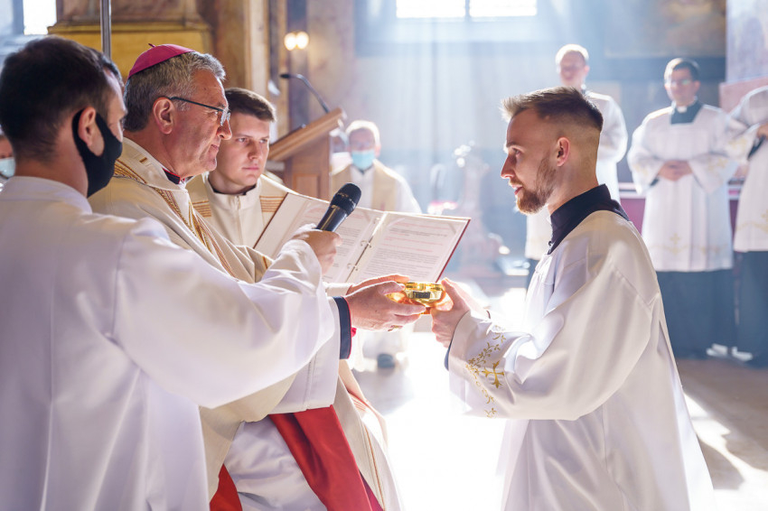 Végül a diakónusi szolgálatra jelentkező, admisszióban részesülő papnövendékhez fordult a megyéspüspök: „Arra jelentkezel, hogy Jézus Krisztus legszűkebb köréhez tartozzál, a papok közösségéhez.” Vianney Szent Jánost idézve a Győri Egyházmegye főpásztora emlékeztetett, hogy a pap nagyobb az angyaloknál, hiszen az angyalok csak barátai Istennek, de a papok Isten helyettesei. Arra buzdított, hogy aki a papságra készül, mélyítse azt az eucharisztikus lelkületet, amit Jézus mutatott példaként az önfeláldozásban és az Atyának való teljes önátadásban.