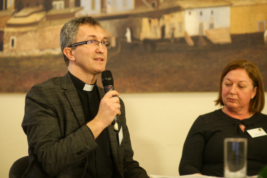 Rétvári Bence parlamenti államtitkár korábban a KIFE felügyelőbizottsági tagja volt. Előadásában elmondta: egyre több katolikus intézmény működik az oktatás, az egészségügy, a szociális területén, számuk évről évre növekszik, így a képzésnek nagy szerepe van. Az államtitkár idézte XVI. Benedek emeritus pápát: a mai kort a harcos kisebbség irányítja, bizonyos területeken mi vagyunk kisebbségben, a médiában biztosan, így nagyon sokat segíthet az a képzés, amit a KIFE folytat. Tevékenysége azért is különlegesen fontos, mert Európában ma tudatosan törekszenek arra egyes politikai, médiában dolgozó csoportok, hogy kiűzzék a keresztény szavakat a szótárból, így nem szabad üldözött keresztényekről beszélni, csak üldözött vallási csoportokról. Ebben a helyzetben nagyon lényeges, hogy vállaljuk kereszténységünket, győzzük le gátlásainkat, szólaljunk fel, ha olyan film készül, ami homoszexuálisnak mutatja be Jézust. Mindebben nagy szerepe lehet a KIFE-nek.
