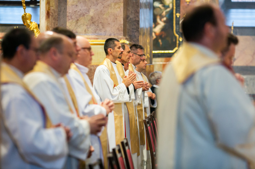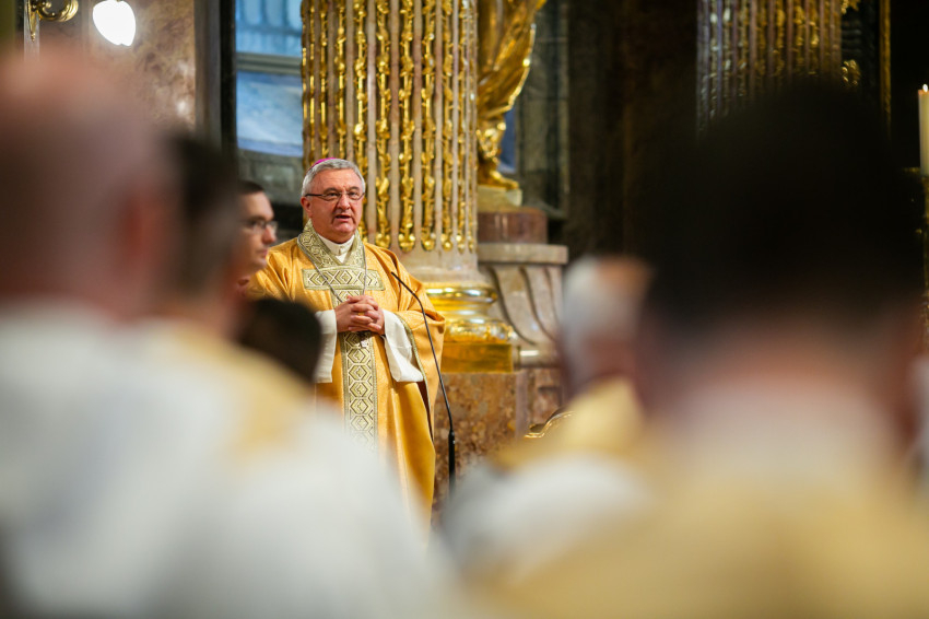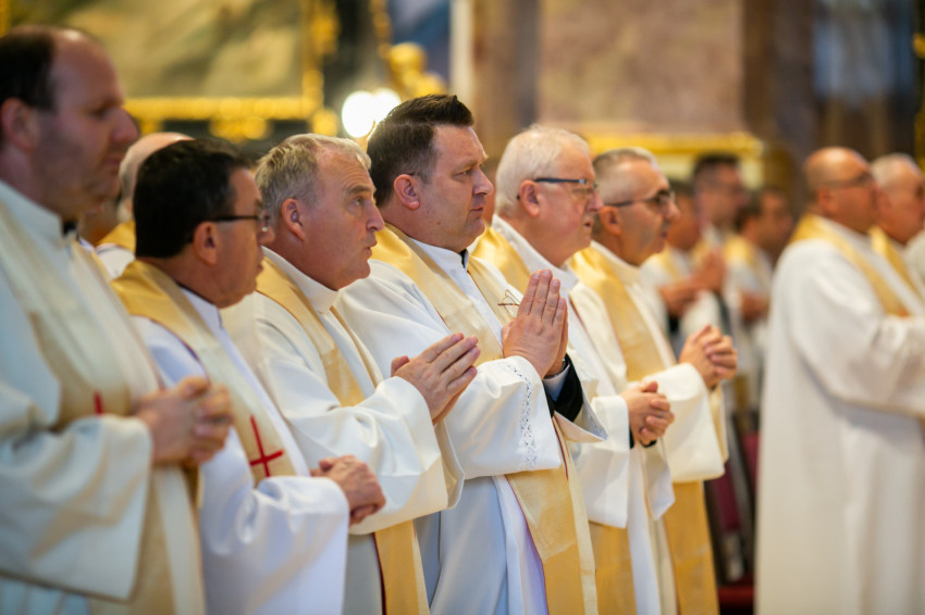 Homíliájában Veres András a megújulás útjáról beszélt, melynek során istengyermekségünkhöz kell visszatalálnunk. A létünk Isten ajándéka, s még nagyobb ajándék, hogy Isten megváltott gyermekeinek tudhatjuk magukat. Ezt a keresztségben kaptuk meg, s általa vagyunk az örök élet várományosai. Isten szentségeivel építi és tartja életben bennünk az istengyermekséget, Jézus pedig az Egyházra bízta, hogy a szentségek kiosztója legyen, amiben a paptestvérek kaptak rendkívüli szolgálatot. De mindnyájan, akik meghívást kaptunk ebbe a közösségbe a keresztség által, egyetlen és mindennél fontosabb célt kell hogy lássunk magunk előtt: