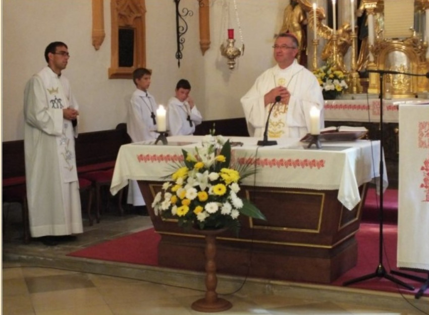 Két szentmisét is celebrált a főpásztor Maria Weinbergben: 10 órakor németül, utána magyarul mutatta be a misét. Mindkét esetben zsúfolásig megtelt a templom hívekkel. Nemcsak a közeli osztrák falvakból érkeztek zarándokok, hanem Magyarországról is. Az eseményről Molnár Péter tudósított.