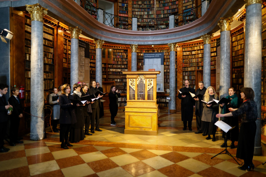 A Pannonhalmi Főapátsági Könyvtárban ezután Kiss Zsolt orgonaművész és Dejcsics Konrád mutatta be a XVIII. század elején készült, felújított Martin Zorkovsky-orgonát, amely az egyik legrégebbi magyarországi barokk orgona.