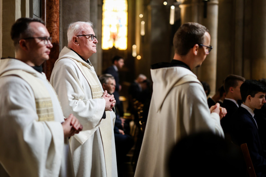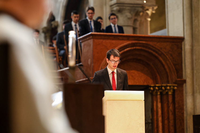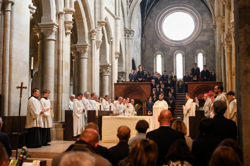 „Ami nemes, ami igazságos, ami tiszta, ami szeretetreméltó, ami jóhírű, ha valami kiváló és dicséretes, arra irányuljon figyelmetek” – Hortobágyi Cirill az ünneplő közösséget a napi szentleckéből, Szent Pál a Filippieknek írt leveléből vett részlettel köszöntötte az idén nyolcszáz éves Szent Márton-bazilikában.
