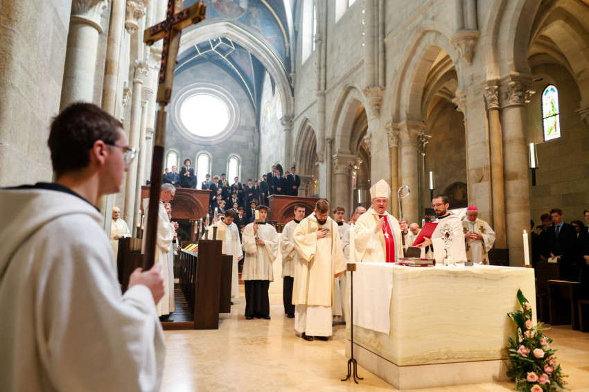 Nem sokszor kerülünk egész életünket meghatározó döntések elé, de néhányat mindnyájunknak meg kell küzdenünk – mondta a győri megyéspüspök. – Szent Benedek is egy azok közül, akik Ábrahámhoz hasonlóan mertek nagyra vállalkozni, merészen dönteni. Ő is kivonult, mert egy egészen más életet akart élni, mint korábban.