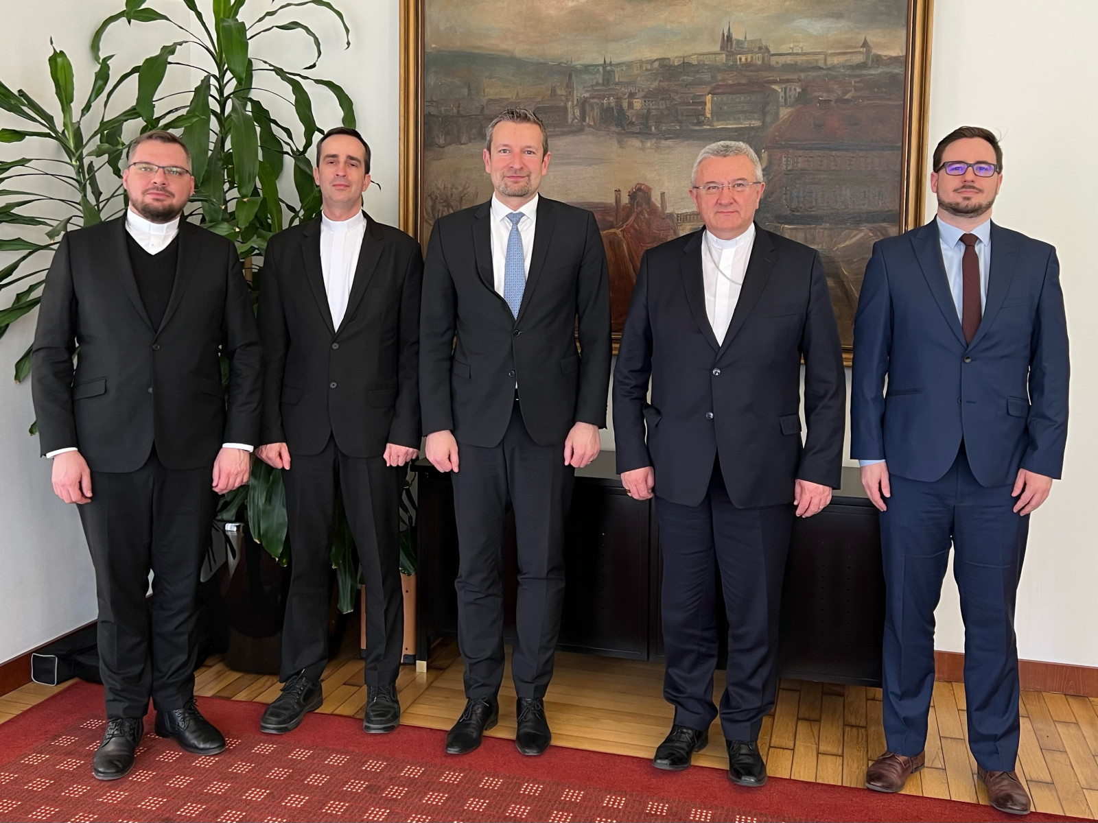 Az Adalbertinum diákotthonban – mely 2022-ben az MKPK támogatása révén nyitotta meg kapuit – lakó egyetemistáknak a hétvége során lehetősége nyilt a püspöknek személyesen bemutatni prágai otthonukat, amit jó hangulatú, kötetlen beszélgetés követett.
